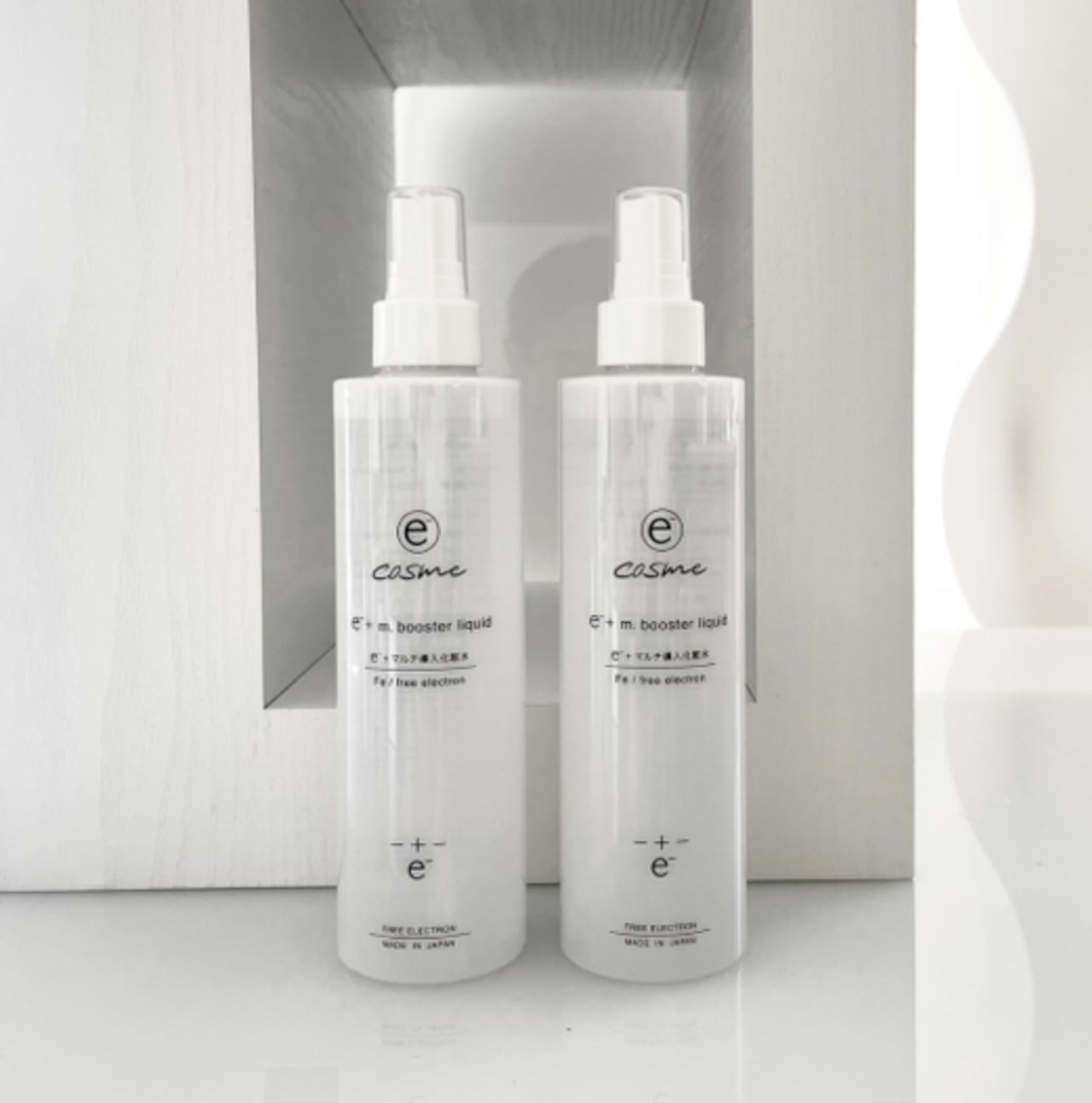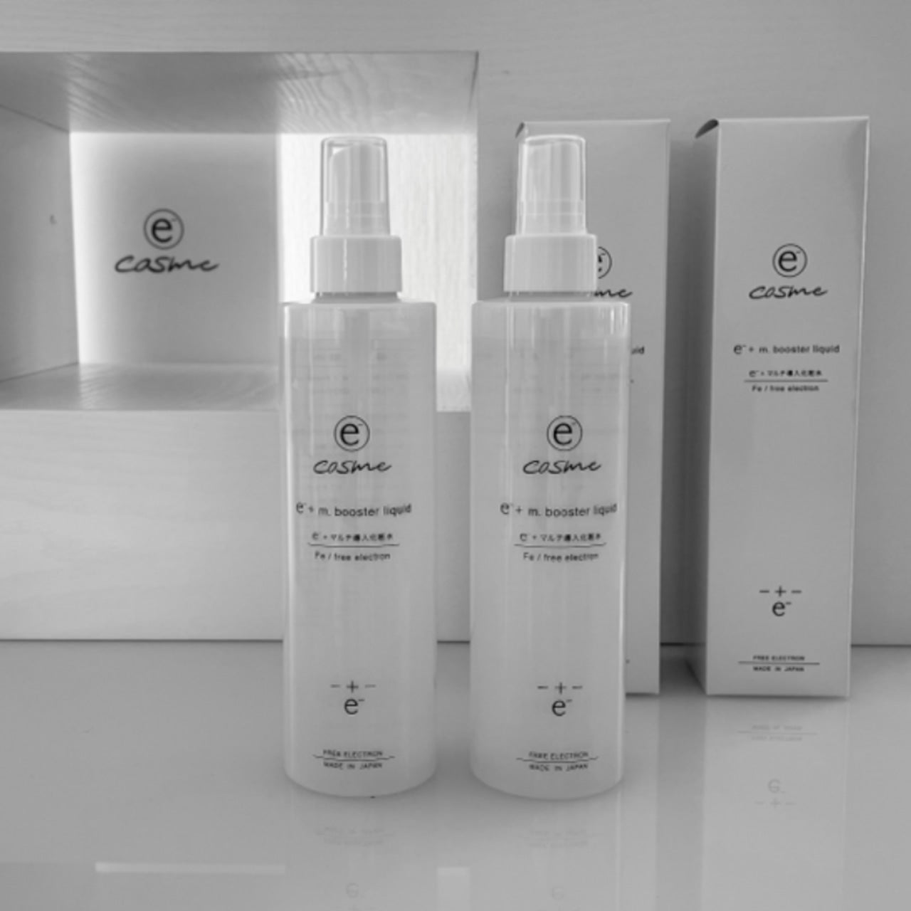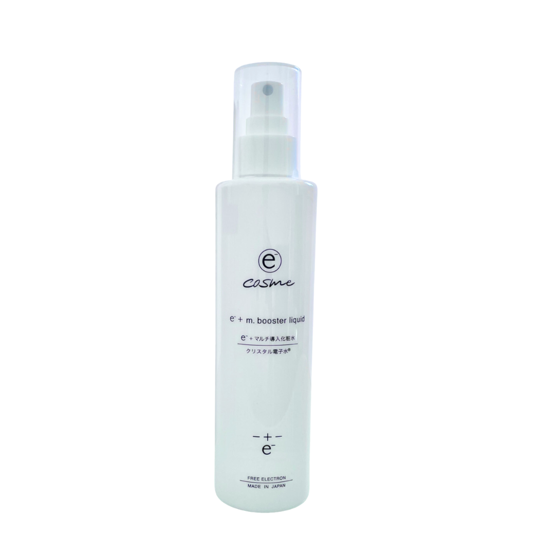 e-cosmeの基本は、この「クリスタル電子水」から始まります。クリスタル電子水は、一般的な化粧品成分の1億分の1と言われるナノ化成分のさらに1億分の1の大きさで、多くの“自由電子”が含まれています。この自由電子が角質層の奥深くまで素早く浸透し、さまざまな美的効果が期待できます。